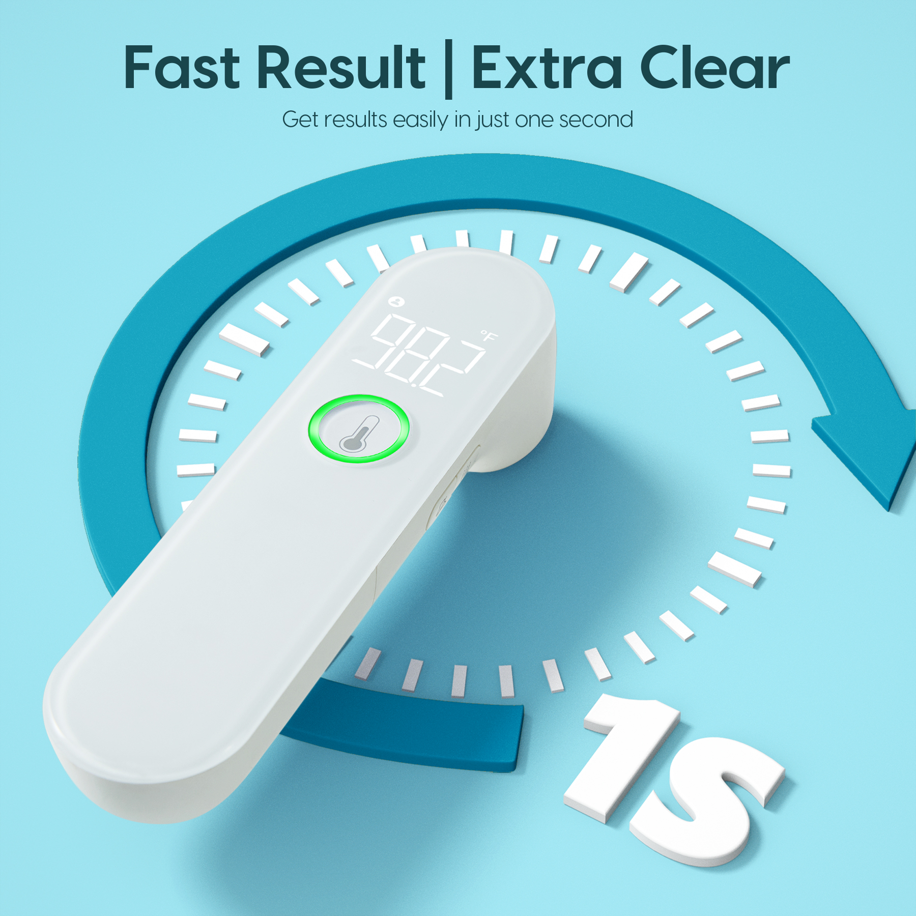 Just put the thermometer 0~1.5 inches away from the centre of the forehead, the gentle guidance light will direct you for accurate aiming. Get an accurate temperature result in 1 second.